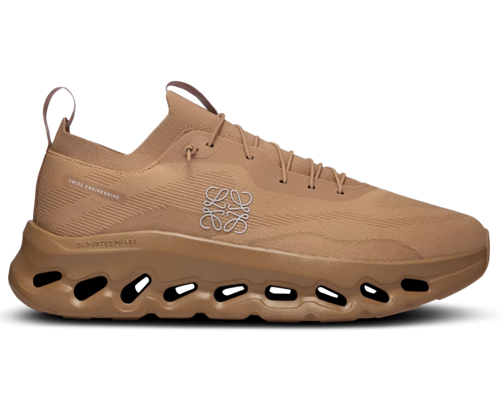 On Running Cloudtilt x Loewe une a inovação da On Running com o estilo sofisticado da Loewe, resultando em um tênis de performance e luxo para o dia a dia.
